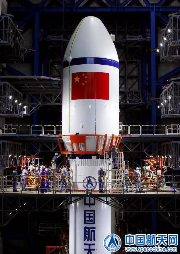 長七A火箭垂直轉(zhuǎn)運至發(fā)射區(qū)
