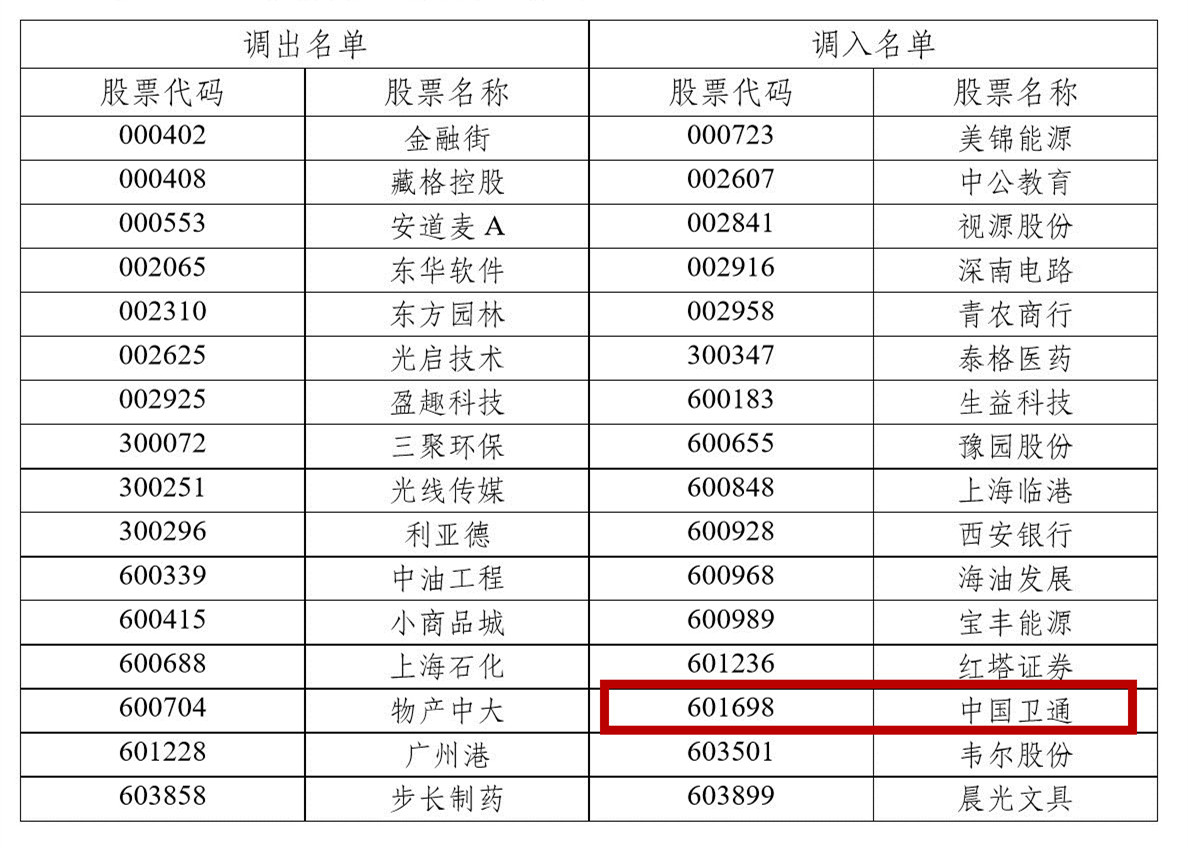 滬深300指數(shù)樣本股調(diào)整名單